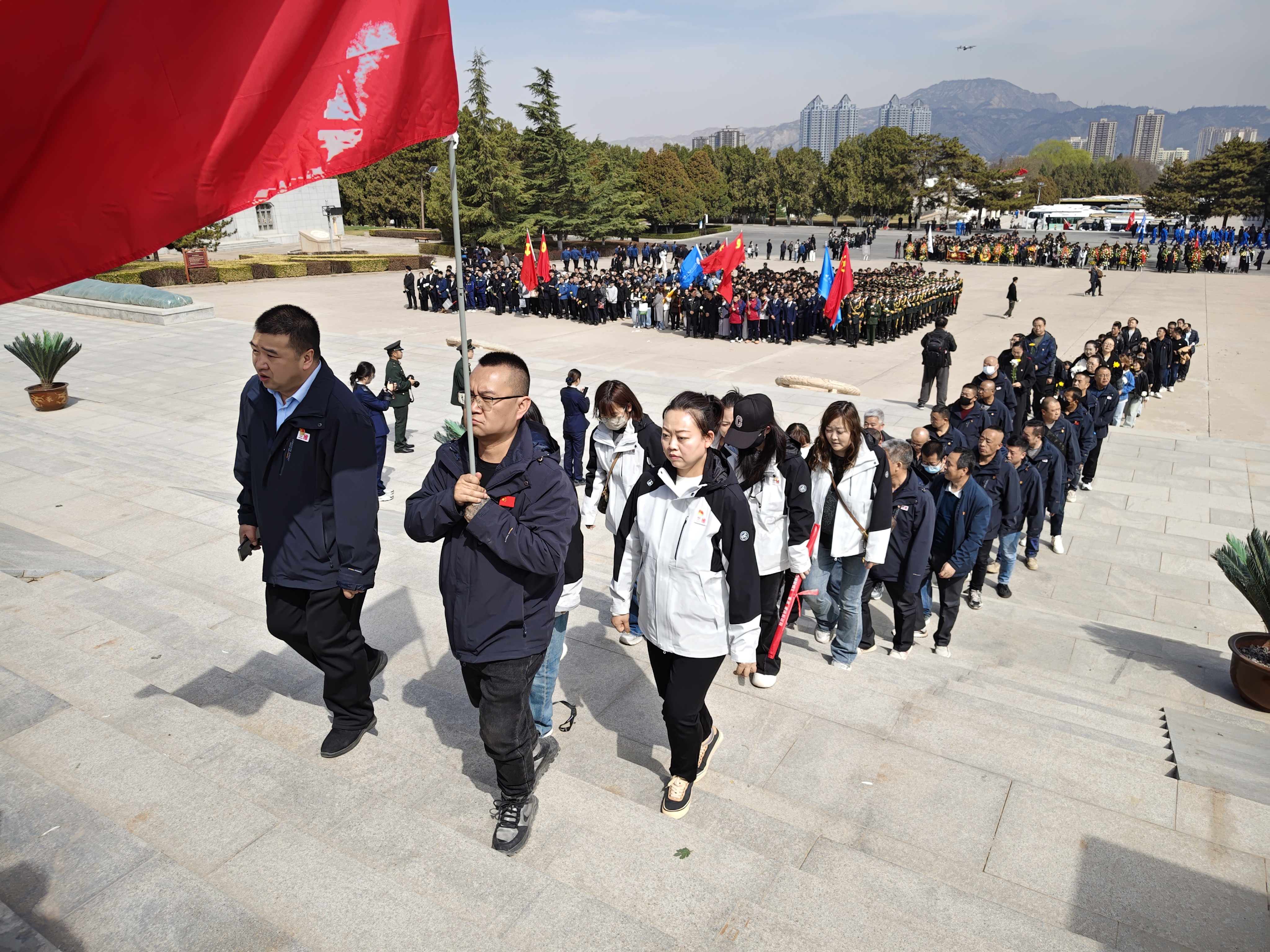 活动现场,全体党员佩戴党员徽章、庄严肃立,奏唱国歌、集体默哀、敬献花篮,向先烈致敬,缅怀其伟大牺牲与卓越贡献。随后,大家瞻仰烈士纪念馆,重温峥嵘岁月,感悟初心使命。